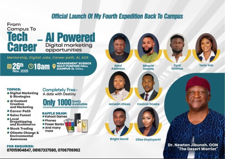 The future is digital and it’s happening now! On November 26th, 2025, all roads lead to the Management Science Multi-Purpose Hall (Campus 3), Delta State University (DELSU) for the Official Launch of the Fourth Expedition Back to Campus, themed: