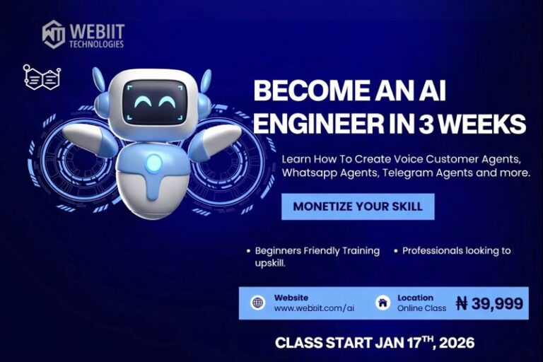 At Webiit Technologies, we’re excited to announce a powerful 3-week AI Engineer training program designed to help beginners and professionals learn practical, monetizable AI skills fast.