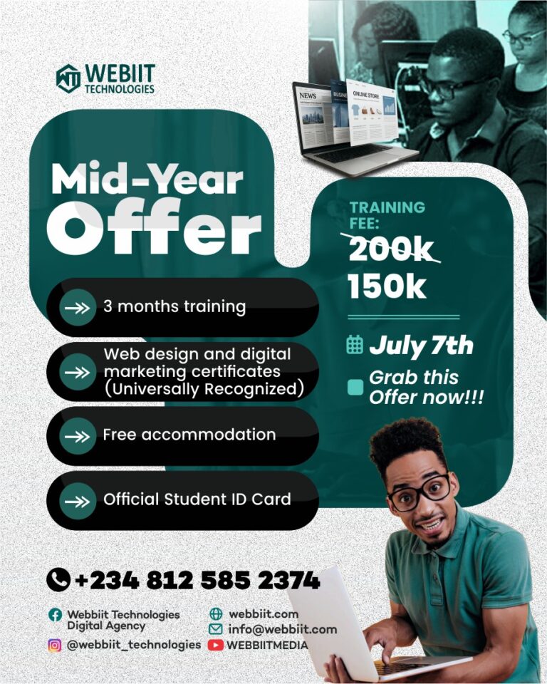 We’re giving you access to 3 months of intensive, hands-on training in web design and digital marketing, plus some amazing bonuses, all for just ₦150K (slashed from ₦200K)!